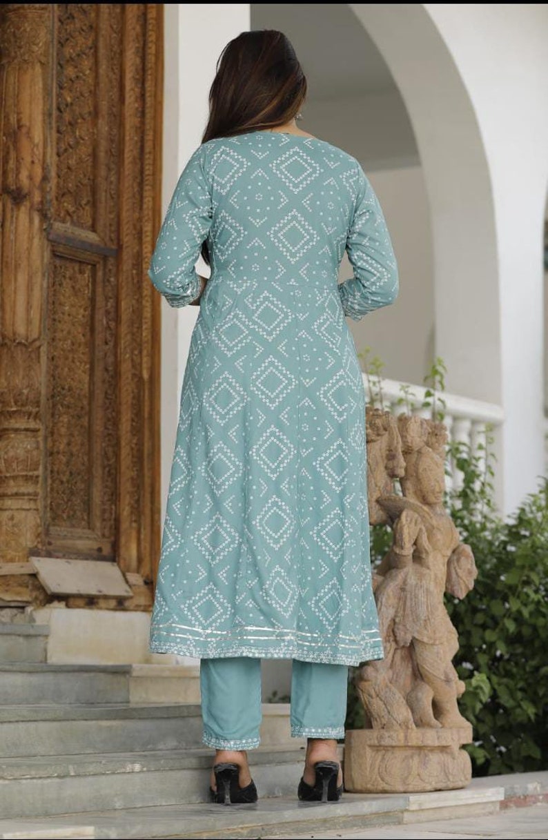 Designer Rayon Anarkali Kurti Long Gown Pant And Dupatta Set Etsy Uk